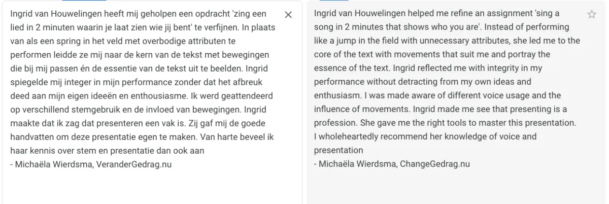 Transformational 2 months one-on-one coaching, weekly sessions, getting you ready for a speaking engagement.